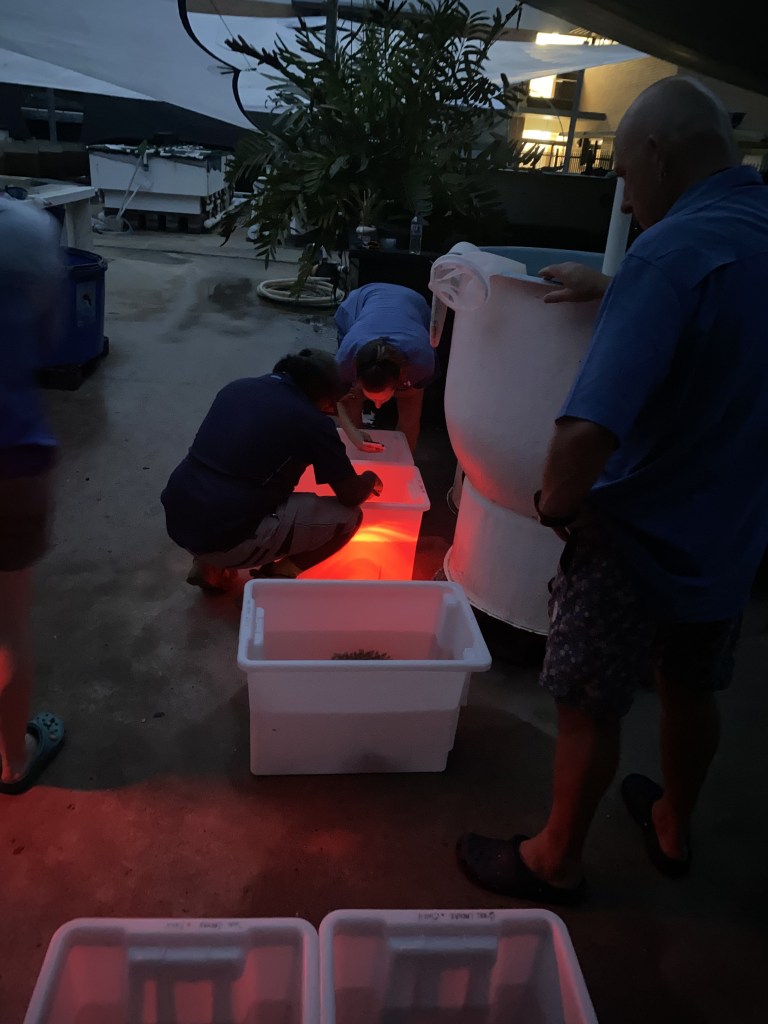 In between the tank-based tasks of caring for our coral larvae as they matured, we spent time in the classroom and lab discussing coral biology and ecology, practical needs of corals in aquaculture, factors that influence timing of coral spawning and coral reef restoration experimental methods and techniques, including monitoring settlement and growth in juvenile corals.