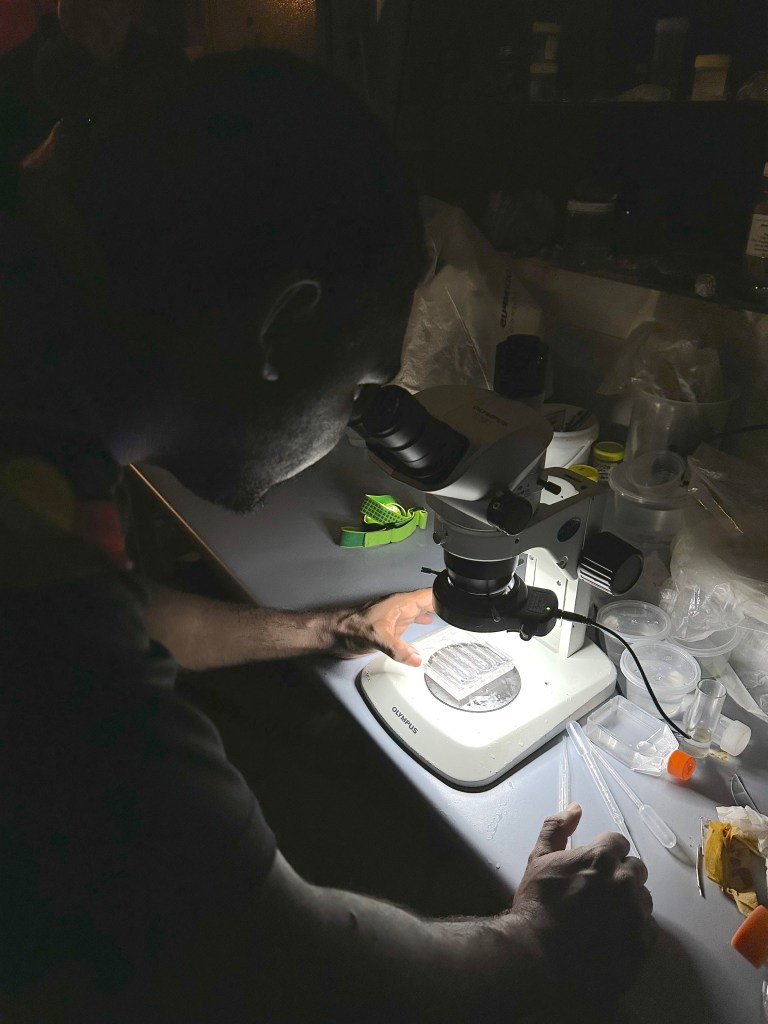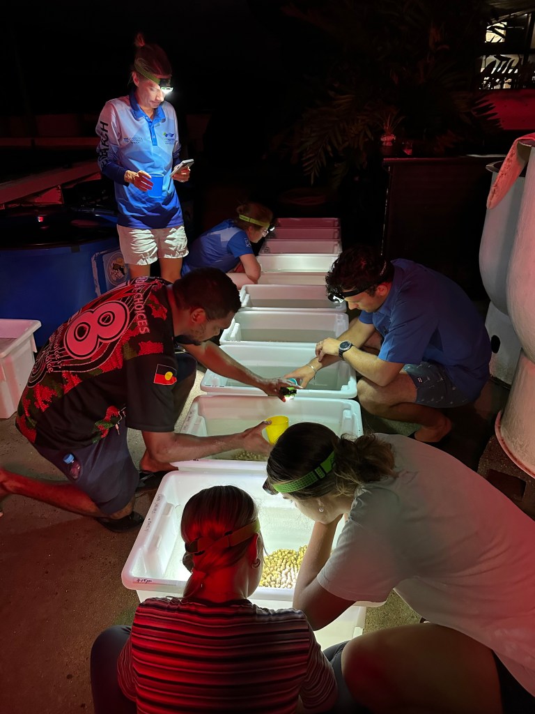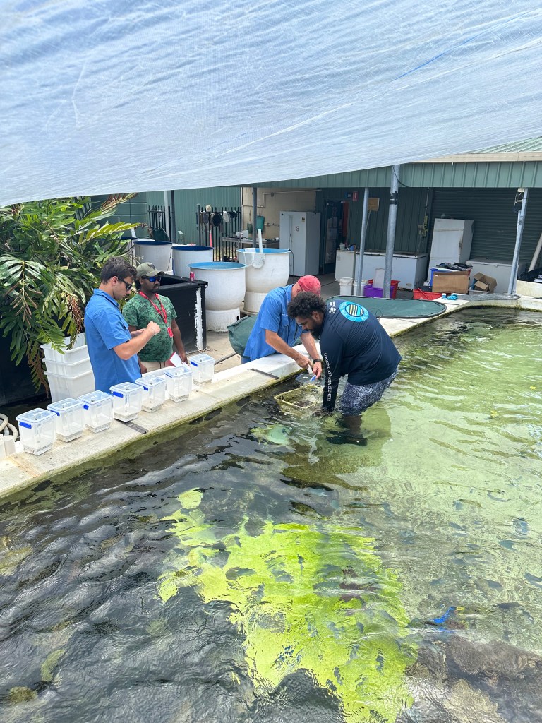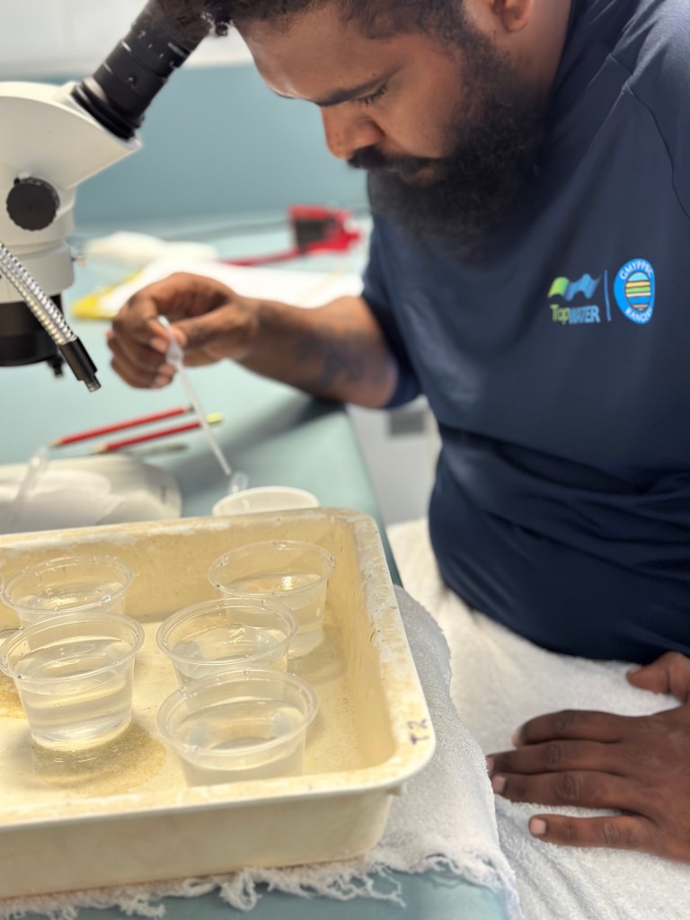 As our larvae matured through their developmental stages of early embryos through to active swimmers, we monitored our larval pools multiple times a day to ensure water conditions and quality were suitable.