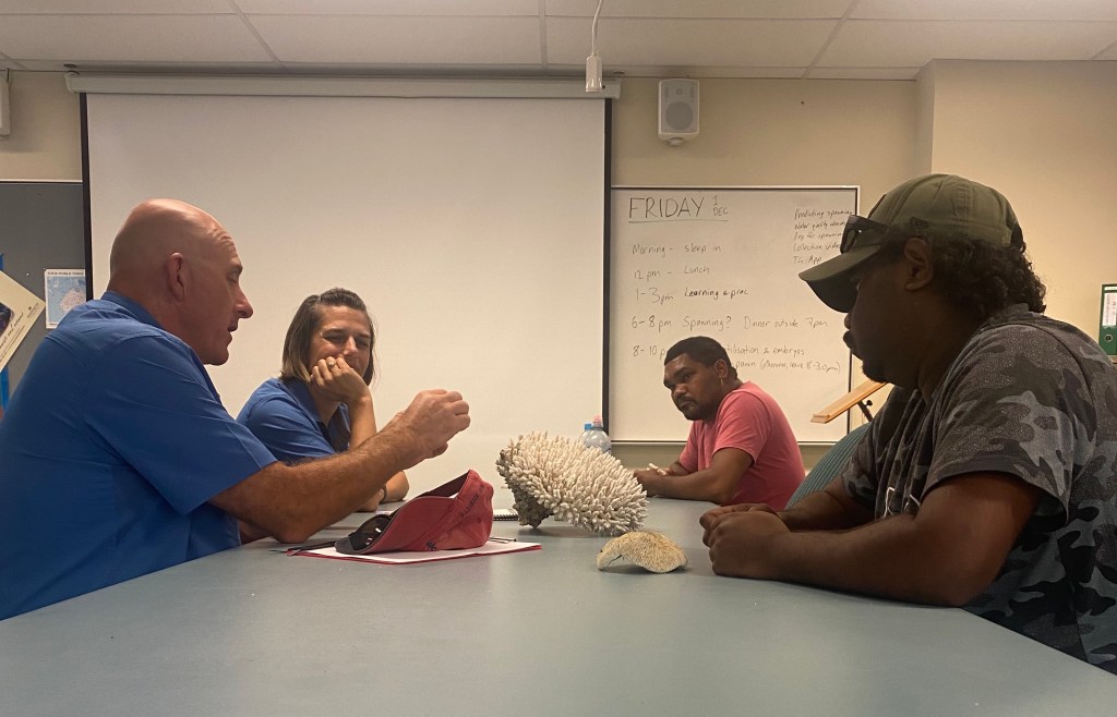 As well as our core Spawning School participants who either stayed on campus or came in daily from Cairns, we had some notable visitors. It was fantastic to have Yirrganydji Elder (Dr) Uncle Bernie Singleton come and give a Welcome to Country on the first day of Spawning School, and hear his stories about connections to the reef and growing up in Yarrabah.