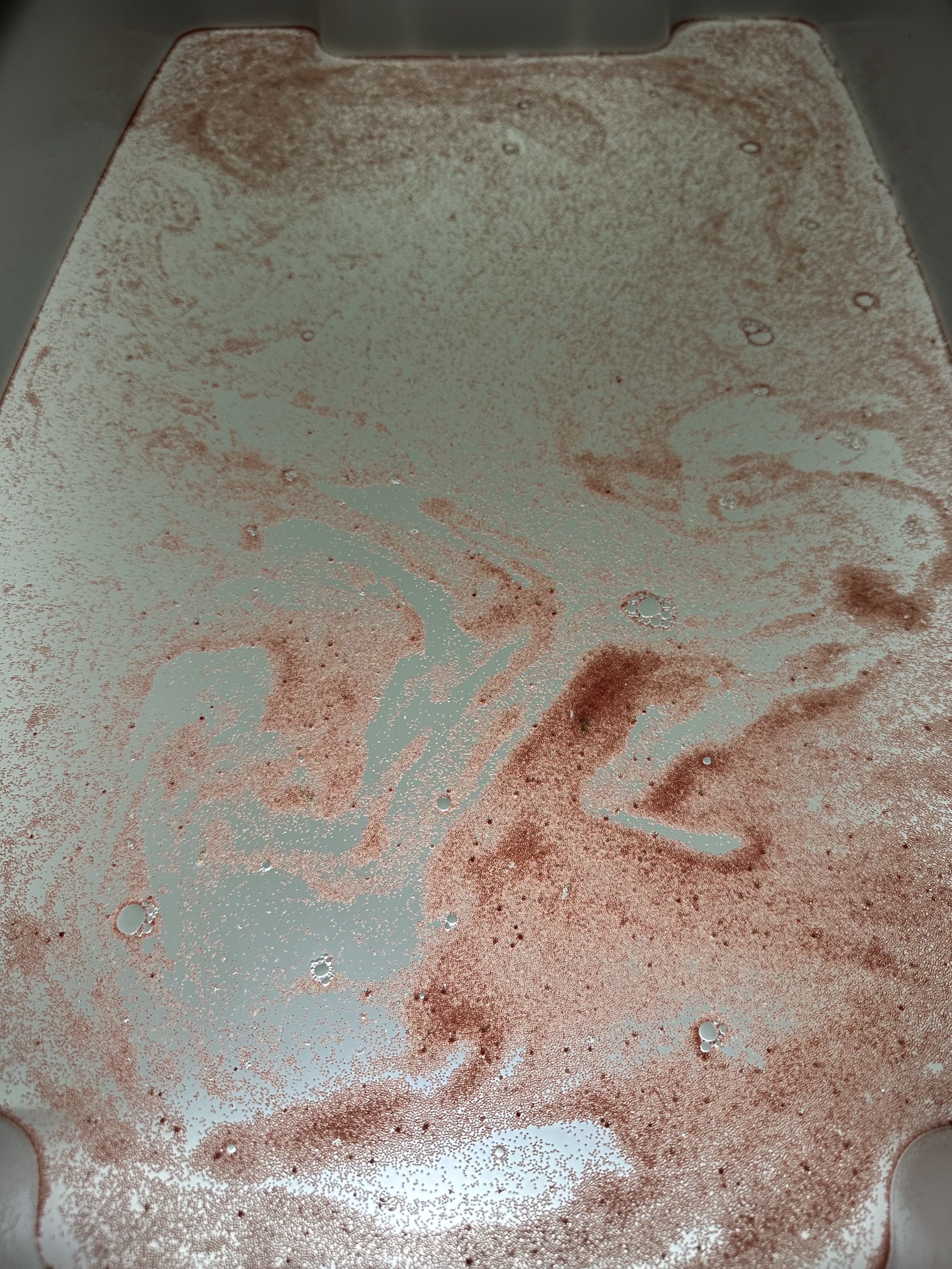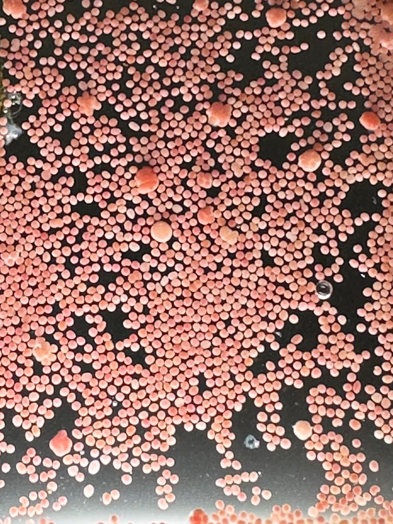After each coral had finished spawning, we skimmed the floating spawn bundles off the surface using plastic cups. Collected bundles were pooled into one container where the bundles gradually broke apart, allowing eggs and sperm from different corals to mix.