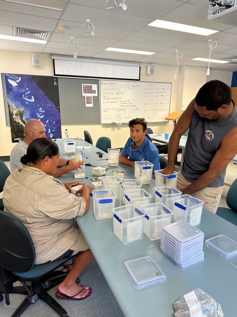 In December 2023, Reef Recruits and JCU TropWATER co-led our inaugural Spawning School, a practical learning program on how to raise coral larvae for reef restoration with Traditional Custodians of the Great Barrier Reef. With a core group of five rangers from Gunggandji-Mandingalbay Yidinji and Yirrganydji peoples and other shorter-term visitors, we had a fantastic week getting to know each other and sharing skills in reef recovery techniques.