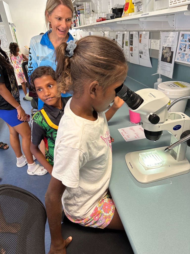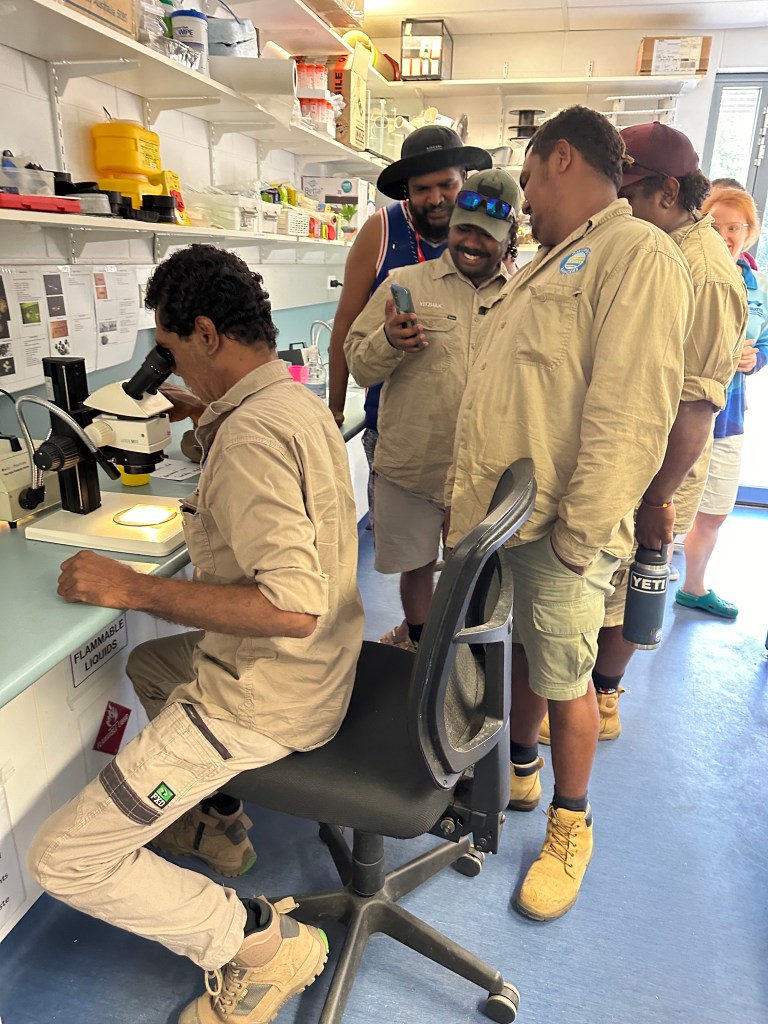 Later in the week, we hosted a full bus load of all ages from the Yarrabah community, joined by more of the GMY rangers and Gunggandji rangers, for Community Day. The Spawning School team and GMY ranger participants shared what we’d been learning about coral spawning and coral aquaculture, then took community members on a hands-on tour of the labs and aquaculture facilities where our corals and larvae were. It was a really special day for connecting with elders, adults, kids, and rangers, with lots of interest to explore further opportunities.